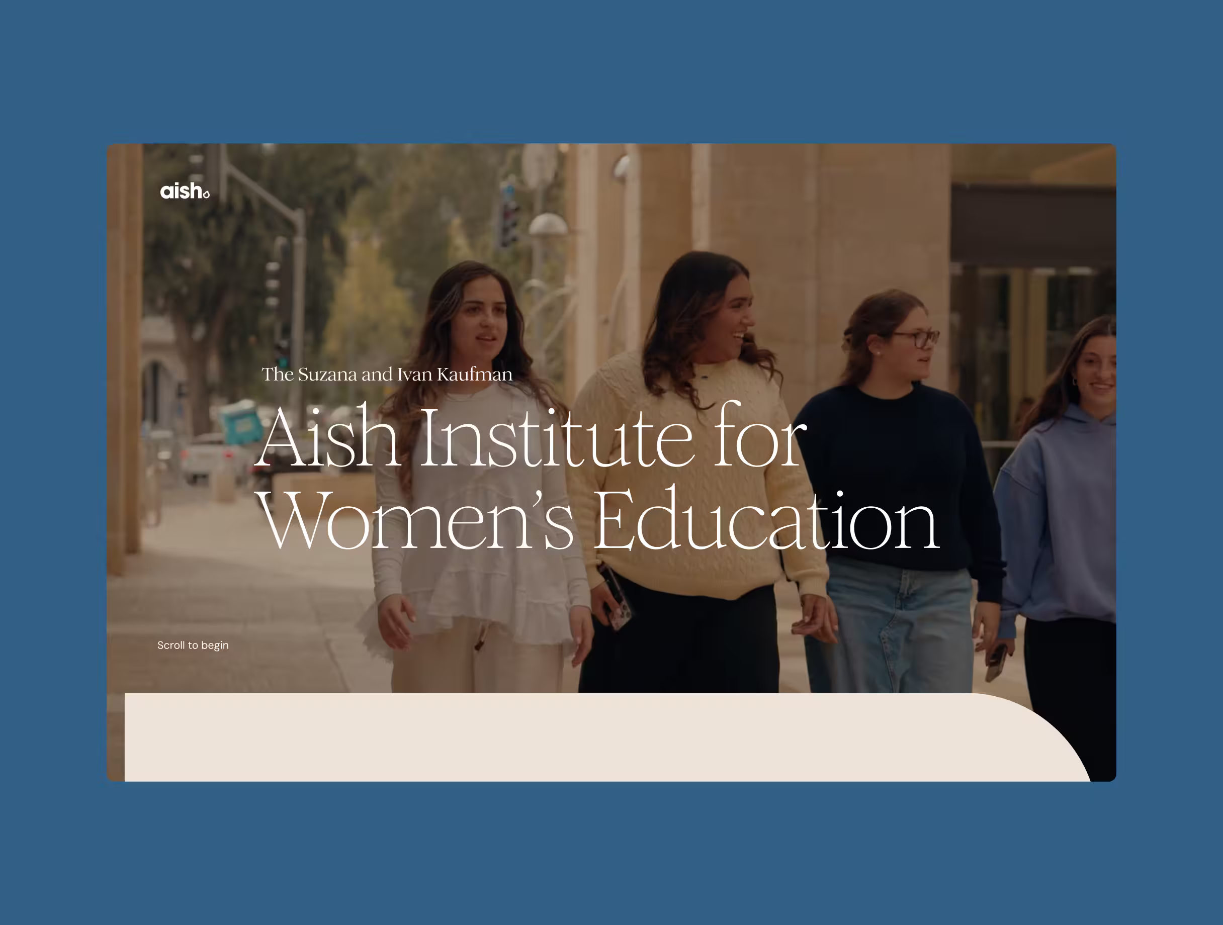 Translated the design of Aish Women’s Institute into a functional Webflow website, implementing sleek animations and clear layouts to create an engaging, informative platform showcasing its mission, programs, and testimonials.